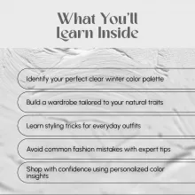 - Identifying a Clear Winter – Learn the three defining characteristics of clear winters: cool, clear, and contrasting. Includes a self-assessment checklist and a real-life transformation case study.