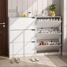 Say goodbye to the shoe clutter in your entryway and hello to organized elegance with this stylish and functional shoe cabinet. Designed to fit even the narrowest spaces, this white shoe cabinet features 3 flip drawers that allow you to store up to 30-36 pairs of shoes. The versatile design includes adjustable and removable shelves, giving you the flexibility to organize shoes of all types and sizes. With its sleek, modern look, this shoe cabinet doesn’t just help you stay tidy—it enhances the style of your home.