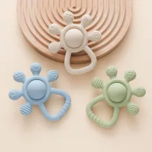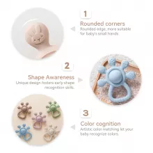 Help your baby through teething with comfort and joy using our Silicone Teether Rattle Toy — a thoughtfully designed, baby-safe soothing toy made just for tiny hands and growing smiles. Crafted from food-grade silicone and shaped into adorable cartoon-style forms, this soft and gentle teether doubles as a rattle and sensory toy to engage your child’s senses while easing discomfort from sore gums.