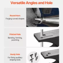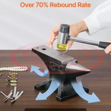 Crafted from premium cast steel, this anvil offers a hardness rating of 50 HRC after heat treatment and an impressive rebound rate of over 70%. The surface resists dents, while the design includes a round horn for shaping, a hardy hole for tooling, and a pritchel hole for bending and punching. The cutting table and thick base provide enhanced control and stability during use.