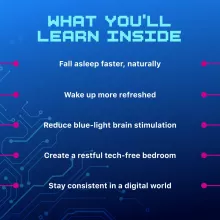 - Chapter 3 – Making Your Bedroom a Tech-Free Sleep Sanctuary (Setting boundaries, upgrades, and mindful wind-down prompts)