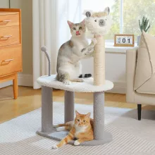 Give your cat the perfect combination of comfort, fun, and function with this small cat tree. Designed for both play and rest, this compact tower is ideal for indoor cats of all sizes. Featuring a natural sisal scratching post, a soft plush platform, and an adorable alpaca toy on top, this cat tree will keep your feline entertained while giving them a cozy space to nap and unwind.