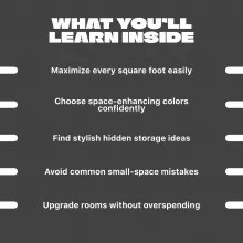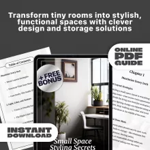If you’ve ever felt frustrated by cramped layouts or cluttered corners, Small Space Styling Secrets is your shortcut to a home you love. Get the clarity, inspiration, and know-how to style smart, store beautifully, and live large in any size space. Download your copy today and start transforming your home into a functional, stylish retreat—one secret at a time.