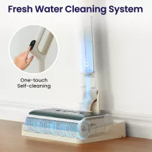 Designed for both dry vacuuming and wet mopping, it features a real fresh water cleaning system that ensures your floors are always being washed with a clean roller brush. No more spreading dirty water around — just sparkling floors, every time. With its one-touch control, switching to full wet mode is easy, letting you tackle dirtier areas with just a press of a button.