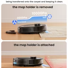 Enjoy a spotless home without lifting a finger. This advanced robot vacuum and mop combines powerful 10,000Pa suction with precision laser mapping to deliver a deep, thorough clean every time. Designed for both hard floors and carpets, it automatically increases suction when it detects carpeted surfaces, ensuring every corner of your home stays immaculate.