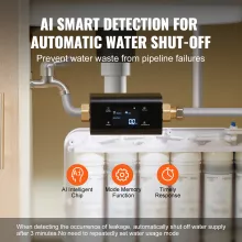 - Automatic Water Cutoff: If a leak is detected and left unresolved for three minutes, the system automatically shuts off the water supply, preventing unnecessary waste and potential damage.