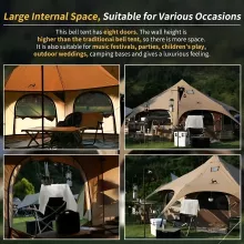 This tent shines during group camping trips, outdoor events, glamping getaways, or family backyard overnighters. Its versatile design and all-season capability make it an essential addition to your outdoor gear collection. Whether you’re braving mountain weather or enjoying summer sun, this tent offers the perfect blend of rugged functionality and cozy living.