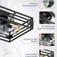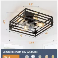 Give your space a fresh blend of industrial style and modern functionality with this low-profile caged ceiling fan. Designed with a square black metal frame and wood grain accents, this flush mount ceiling fan instantly adds character to bedrooms, kitchens, or living rooms. Its compact build fits seamlessly into low ceilings while providing powerful airflow and ambient lighting all in one sleek design.
