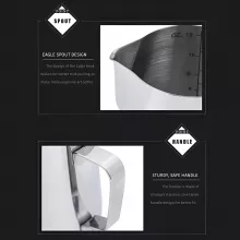 This frothing pitcher isn’t just about its sleek, professional look—it’s built for serious coffee lovers who want to enhance their at-home brewing experience. Whether you’re a beginner or an experienced barista, the stainless steel construction ensures superior heat retention, making it easier to froth milk to the perfect temperature. With the precision spout, you can pour milk smoothly and precisely, allowing you to create stunning latte art designs with ease.