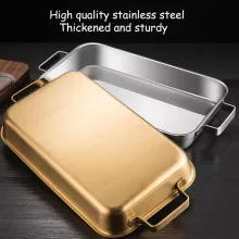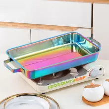 Crafted from high-quality 430 stainless steel, this plate ensures even heat distribution for perfectly grilled or baked results. The flat bottom helps food cook consistently, while the sturdy construction resists warping or damage from high temperatures. Available in a range of finishes including silver, gold, rose gold, and iridescent rainbow tones, it blends effortlessly into any kitchen or dining aesthetic.