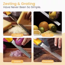 This tool is best used when you want to add fresh, zesty flavors or fine garnishes to your dishes in seconds. Perfect for home cooks and culinary creatives alike, it saves time in the kitchen while adding that gourmet touch to every meal. From baking lemon tarts to topping off salads with finely grated cheese, this zester grater gets the job done fast—and without the mess.