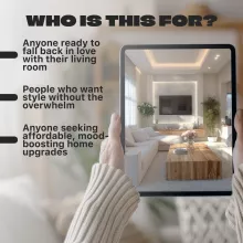 - Chapter 1: Why Your Living Room Needs a Refresh — Understand how your environment impacts your mood, spot the signs it’s time for change, and set meaningful intentions.