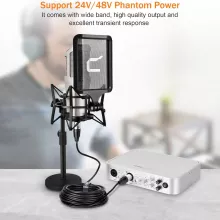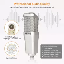 Step up your recording game with this high-performance studio condenser microphone. Engineered for clarity, depth, and warmth, it delivers a rich, professional sound ideal for vocals, voice-overs, podcasts, and instrument recording. With a large 1.34-inch (34mm) gold-plated diaphragm and cardioid pickup pattern, this microphone captures every detail while minimizing background noise — making it your go-to mic for studio perfection.