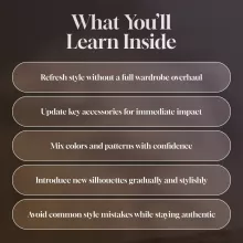 Unlike other style guides, this resource focuses on subtle, strategic updates that make a big difference. It’s tailored for those who want to learn how to update your style without overhauling their existing wardrobe. With clear steps, relatable examples, and practical strategies, it’s not just a guide—it’s your roadmap to effortless style evolution.