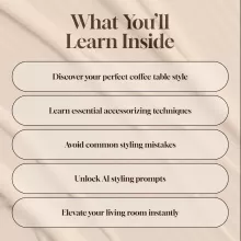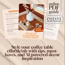 Your coffee table is more than just a spot to set down drinks—it’s the heart of your living room. The Art of Accessorizing Coffee Tables is a beautifully designed digital guide created to help you style your coffee table with confidence. Whether you love modern minimalism, vintage charm, or eclectic touches, this guide provides expert tips, must-have accessory ideas, and even AI-powered styling prompts to make your coffee table decor feel intentional and effortlessly chic.