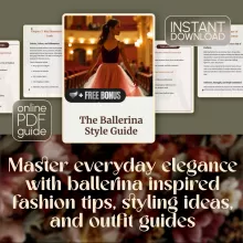 Step into a world where grace meets everyday wear with The Ballerina Style Guide, your complete digital download for mastering ballerina inspired fashion. Whether you’re drawn to the soft tulle skirts, delicate pastels, or the poised elegance of the ballet aesthetic, this beautifully designed guide shows you exactly how to bring the magic of the studio into your daily wardrobe. With practical styling advice, visual inspiration, and easy-to-follow tips, this resource turns timeless ballerina charm into wearable, modern looks for every occasion.