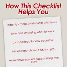 This digital checklist is designed for anyone who owns jeans (so, basically everyone!)—from style beginners to fashion lovers looking for a streamlined system. It’s ideal for women who want to maximize their wardrobe without buying new clothes every season. Whether you’re a busy mom, a working professional, or a student, this guide brings ease and creativity to your everyday dressing.