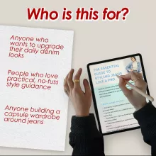 Unlike generic fashion ebooks, this product is built as an interactive, checklist-style resource that gives you tangible, mix-and-match outfit direction—not vague inspiration. You’ll get expert guidance tailored to real-life situations like travel days, workwear, and date nights. The inclusion of jeans care and DIY styling hacks adds even more value beyond just “what to wear with jeans.”
