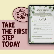 Inside this handy digital download, you’ll find a comprehensive list of actionable steps to incorporate eucalyptus oil into your daily skin care routine. The checklist includes: