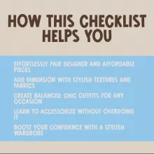 If you’ve ever found yourself unsure about how to pair high fashion with casual basics, this checklist is for you. The High-Low Fashion Checklist helps you confidently style any piece in your wardrobe, no matter the occasion. Its simplicity makes it easy to integrate into your daily dressing routine. Plus, the step-by-step approach takes the guesswork out of styling, so you can focus on looking great without stress!