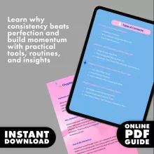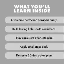 Unlike generic productivity guides, this resource goes beyond theory. It blends practical tools, routines, and a guided 30-day plan so you don’t just learn why consistency beats perfection—you actually live it.