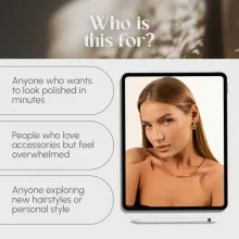With a fun and easy-to-follow structure, this downloadable guide combines expert styling tips, visual inspiration, and practical tools so you can confidently mix and match your favorite earrings with your hair—every single day. No more second-guessing your accessory choices. It’s time to create balance, highlight your best features, and express your signature vibe.