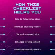 This checklist is designed for movie lovers, sports fans, and gamers who want a flawless home theater experience. It’s also perfect for anyone moving into a new home, upgrading their living room, or simply tired of cluttered cables and poor sound. Unlike generic guides, the Ultimate Home Theater Setup Checklist blends practical design tips with technical know-how, giving you a streamlined resource that makes the process enjoyable.