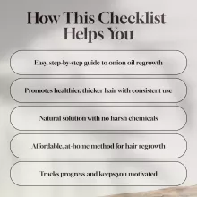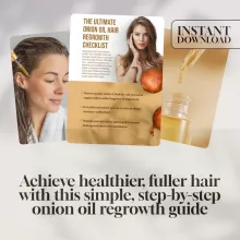 Ready to see visible regrowth and give your hair the nourishment it deserves? Download the The Ultimate Onion Oil Hair Regrowth Checklist today and take the first step toward healthier, stronger, and fuller hair. With easy-to-follow instructions and valuable tips, you’ll be well on your way to restoring your hair’s vitality. Don’t wait—transform your hair care routine and let onion oil work its magic!