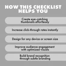Inside this comprehensive digital download, you’ll discover expert strategies for crafting thumbnails that compel users to click. This checklist covers everything from choosing the perfect visuals to optimizing your design for mobile screens. It’s your go-to resource for consistently creating thumbnails that don’t just look good but work wonders for your click-through rate.