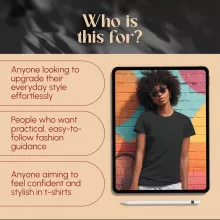 Unlike generic style tips, The Ultimate Tee Style Guide is designed specifically for tshirt styling for women, offering step-by-step instructions, real-life examples, and practical strategies. It’s not just about fashion—it’s about building confidence and making styling simple, fun, and stress-free.