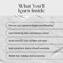 Unlike generic fashion guides, this one is entirely focused on the kibbe theatrical romantic type. It blends detailed insights with practical tools like checklists and real-world examples, making it a highly actionable and personalized resource. You’ll walk away not just knowing what looks good—but *why* it works for you.