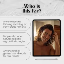 This guide is for any man who’s ready to stop panicking and start acting. Whether you’re 25 or 55, if you’re dealing with thinning, shedding, or a receding hairline, this is your blueprint. Designed with men in mind, it tackles the science, habits, and mindset you need to see real progress.