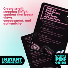 Don’t let weak captions hold back your content! Download TikTok Captions That Capture Attention today and start writing captions that grab attention, boost engagement, and help your videos go viral. Instant digital download, ready for immediate use.
