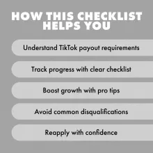 - Save time — all TikTok creator rewards program requirements gathered in one simple checklist