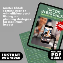 Ready to level up your TikTok game and save time while creating content? Introducing TikTok in Batches: Create More, Stress Less, the ultimate guide to mastering the art of batch filming for TikTok! Whether you’re a seasoned creator or just starting, this guide will teach you how to create more content, stay consistent, and reduce the stress of daily filming. With proven strategies and expert tips, you’ll streamline your content creation process and start seeing results faster than ever.