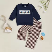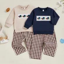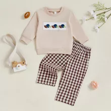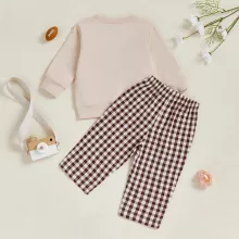 Get your toddler ready for the cozy days of fall with this adorable 2-piece autumn outfit. Featuring a long-sleeve O-neck top with sporty rugby embroidery and matching plaid pants, this set is designed for all-day comfort and effortless charm. Whether you’re heading to a family gathering, playdate, or capturing seasonal photos, this outfit brings together playful style and practicality in one perfect combo.