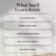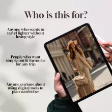 - Chapter 4: Putting It All Together: Sample 7-day travel wardrobe plan, downloadable packing checklist, and step-by-step guidance for staying stylish on the go.
