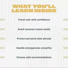 - Staying Safe at Your Destination: Accommodation selection, meeting new people safely, nightlife boundaries, and polite “No” scripts