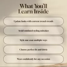 - Chapter 4: How to Style Trench Coats in Everyday Life – Day-to-night transformations plus a case study styling one trench in three ways