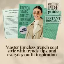 Timeless, versatile, and endlessly chic—trench coats have never truly left the fashion scene, and our guide Trench Coats Are Still Turning Heads shows you exactly why. Whether you’re asking yourself “are trench coats in style?” or looking for fresh ways to wear one, this digital download is your go-to resource. With insider insights, styling inspiration, and practical tips, you’ll see how to make a trench coat work for any occasion and avoid common mistakes that age your look.