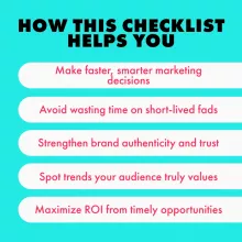 This checklist is perfect for business owners, digital marketers, influencers, and creatives who want to stay relevant without losing authenticity. If you’ve ever felt pressured to jump on every new trend but weren’t sure if it was the right move, this resource is for you.