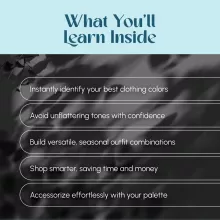 - Chapter 4: Next Steps: Refreshing Your Look – Learn how to shop smarter, accessorize with intention, and keep your wardrobe seasonally fresh—all while staying true to your palette.