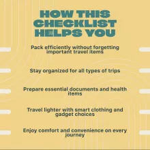 - Travel smarter, lighter, and more confidently with a fully comprehensive checklist at your fingertips.