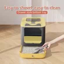 Built with high-quality, non-toxic plastic, this litter enclosure is safe, sturdy, and made to last. Its anti-splashing lid design keeps litter where it belongs—inside the box—while the integrated pull-out drawer makes cleaning quick, simple, and hands-off. Whether you have a curious kitten or a full-grown cat, this box suits all sizes and breeds thanks to its spacious interior.