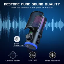 Take control of your voice with a USB condenser microphone built for gamers and streamers who demand clarity and style. This microphone delivers rich, crisp audio with noise-cancelling technology that filters out background distractions, so your voice always sounds clean and professional. Whether you’re deep in a competitive match, hosting a live stream, or recording a podcast, this mic ensures you’re always heard loud and clear.