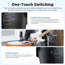- Switchable cardioid and omnidirectional patterns for flexible recording options