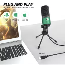 This microphone uses a cardioid polar pattern to capture sound directly from the front, reducing background noise and focusing on your voice. It’s ideal for close-up use during one-on-one recordings, online meetings, or gaming sessions. A built-in gain control knob lets you adjust input levels on the fly, giving you full control over your audio. No need for phantom power or extra interfaces—it runs smoothly off your computer’s USB power.