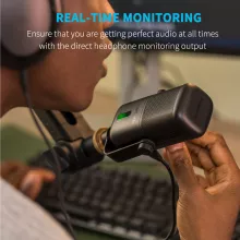 - Real-time monitoring with 3.5mm headphone output and volume control