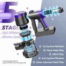 The V90 Cordless Vacuum Cleaner is designed to offer a complete cleaning solution for your home. Whether you need to tackle hard floors, carpets, or pet hair, this 6-in-1 ultra-light stick vacuum is equipped to handle it all. With its 365W motor and 28KPa suction power, this vacuum ensures that no dirt or debris is left behind. From the living room to the bedroom, enjoy a spotless home with ease, thanks to this powerful yet lightweight cleaning tool.