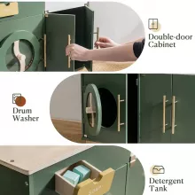 What makes this washer and dryer playset truly special is its vintage-inspired design in a charming green color. The intricate metal hardware adds a touch of elegance, making it a standout piece in any playroom or home decor theme. This playset isn’t just about fun—it’s a tool for teaching children responsibility, organization, and life skills in a hands-on, engaging way. Plus, it pairs beautifully with other items in the Vintage Green series, allowing for a cohesive playroom setup that encourages role-playing in everyday scenarios like cooking and cleaning.